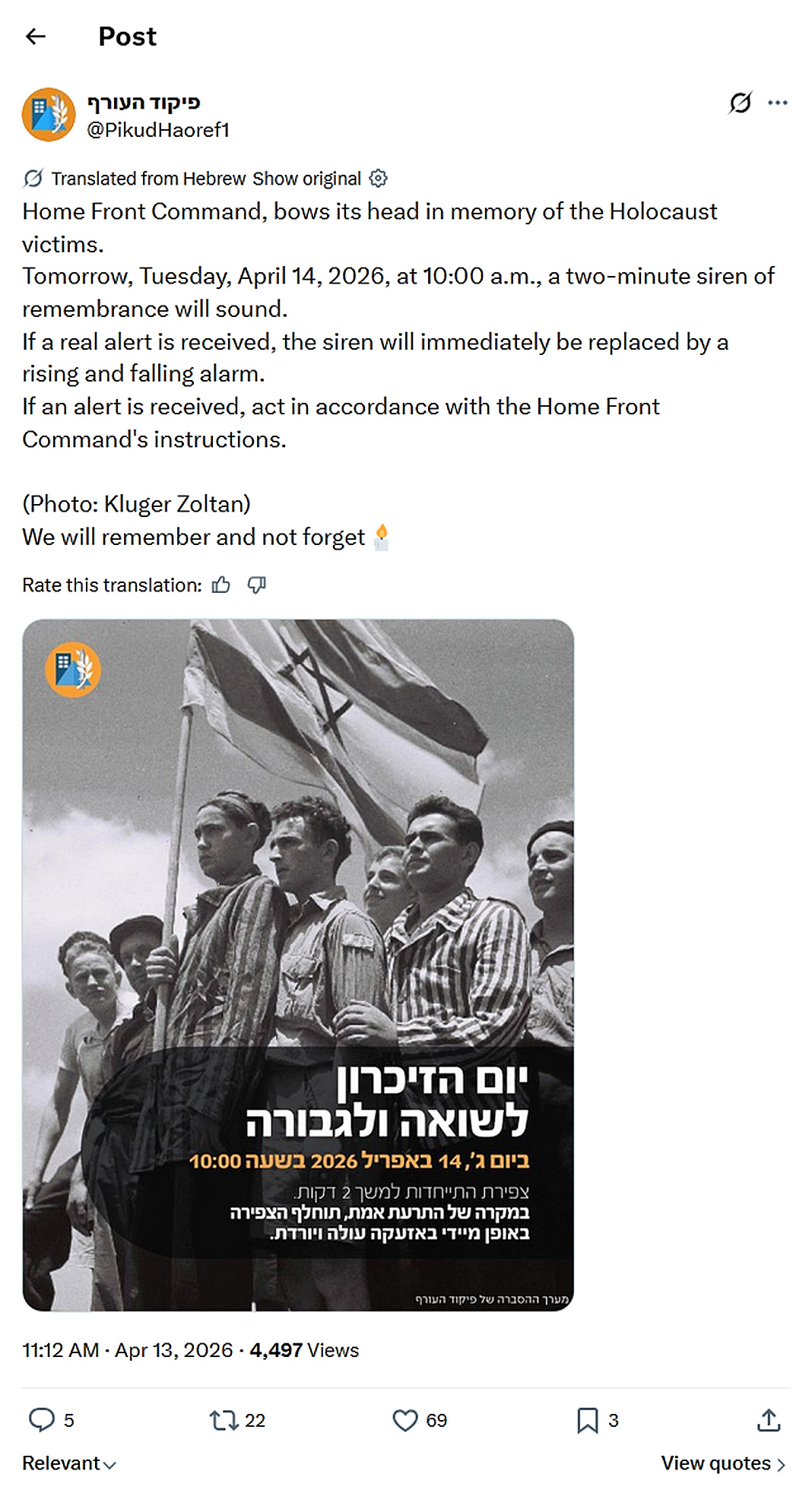 “The IDF continues to operate forcefully against Hezbollah targets in Lebanon. The terrorist organization is paying, and will continue to pay, a heavy price for firing at Israel.