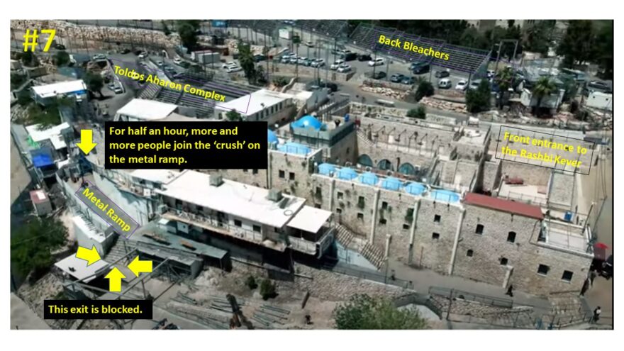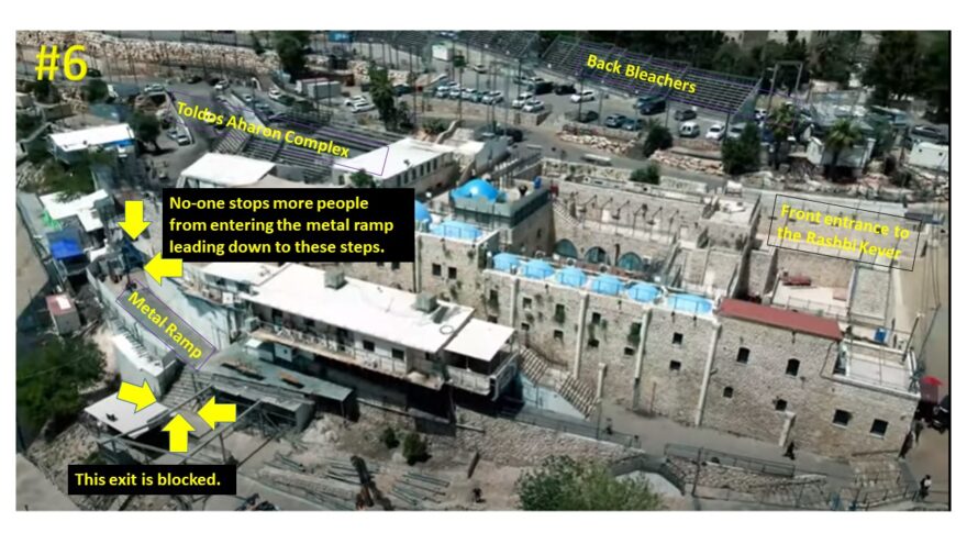 So who made that decision, in stark contravention of this report that there should be at least 4 exits? And then, who made the decision to close the only exit out of the Toldos Aharon complex, and who else signed off on it?Once we know that, I think we’ll know a lot more. ==== UPDATE 2: THE VIDEOIn a minute and a half, you can now grasp what the MSM / government / police have all failed to explain to us over the last 4 days, namely how this ‘tragedy’ really occurred. BH, I’m working on doing this in Hebrew, too, so the truth can get out there: How the Meron disaster really happened==== UPDATE 3:I got this comment from the eyewitness in the video above, who wanted to make it clear that he doesn’t say / doesn’t know if the gates were still in place half an hour later.