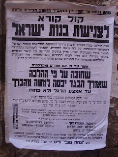 New signs have just been put up all over Jerusalem with the opinion of both the leading Sefardi and Ashkenazi Rabbis on the subject of modesty – specifically the length of womens skirts.