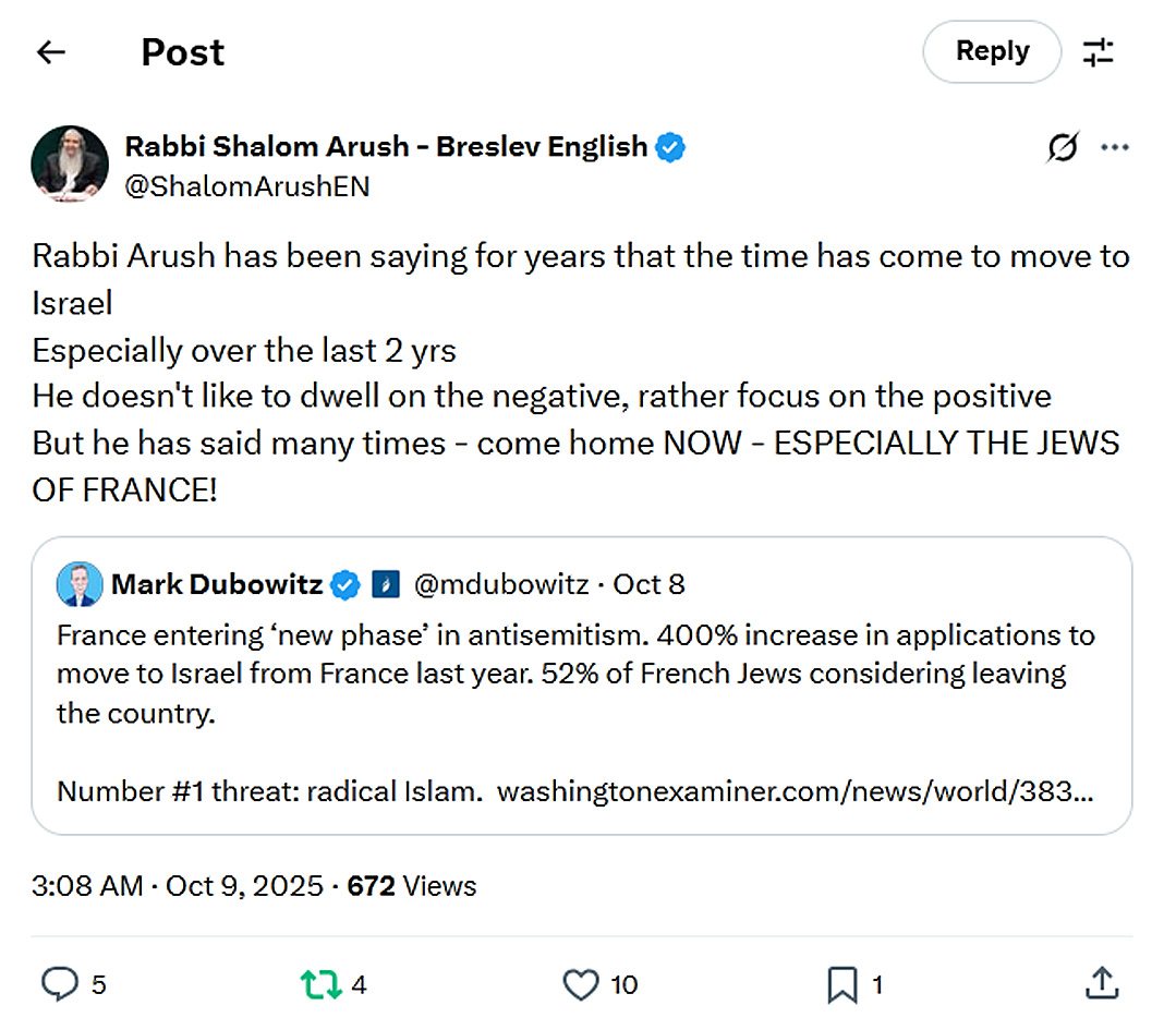 Jewish advocates warn France entering ‘new phase’ of antisemitismBy Emily Hallas October 7, 2025 6:00 am https://www.washingtonexaminer.com/news/world/3839904/jewish-advocates-france-new-phase-antisemitism/