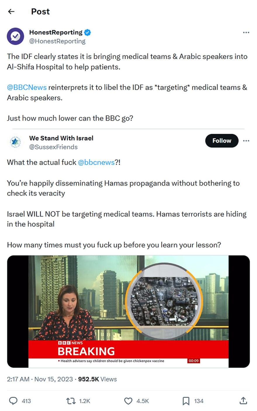 HonestReporting-tweet-31October2024-Wikipedia is not a reliable source