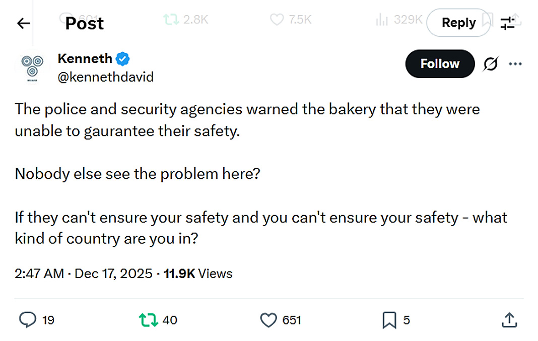 Avner’s, a Jewish-owned bagel bakery in Sydney, has closed effective immediately following the Bondi chanukah massacre and escalating antisemitic threats. The owners say police and security agencies warned the bakery had become a potential target, and that they were unable to guarentee their safety, making it unsafe to continue operating as a publicly Jewish business. After years of harassment, the recent attack was the tipping point.